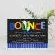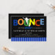 Ge höger i party! Den här inbjudan är till en stuga, trampolinpark eller party. Det har en blå och ljusblå stripe gräns på grund. "BOUNCE" i ord är i starkt primärt färgad brev som är stort över inbjudan. Det finns en silhuett av en pojke i vitt som hoppar bakom ord. Anpassa med din party-information. Kolla in de många andra designerna och produkterna i vår butik.