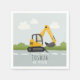 Den här söta och moderna pojkens napkin-födelsedagskalender har en gult grävare (grävare) och ett ställe för dig att lägga till ditt barns namn och ålder. Perfekt för vilken liten pojke som drömmer om att vara byggkonstruktör!