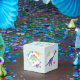 Den här söta och vismliga blåa babyduschboxen har dinosauriska tecknader, med t-rex, stegosaurus och jurydjungelväxter, och kan vara personlig med förälderns namn. Perfektens dinosaurie fick en gåva till din medsydda par babydusch.