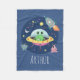 Boys Cute Space Alien Rocket Tecknad & Namn Kids Fleecefilt
