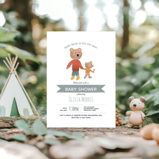 Den här söta och moderna babyduschnapkin-designen i pojke har en förälder och en björn i baby. Det finns också utrymme för er att lägga till mor namn och datumet för ert skogsområde party.
