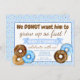 Pojken skänk födelsedagsfest inbjudan med bruna och blå frostade munkar på en blå sprinklbakgrund i flera färg. Det här donut födelsedagsfest inbjudan är enkelt att anpassa för din händelse genom att helt enkelt lägga till dina uppgifter.