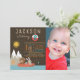 Fiske i födelsedagsfest inbjudan med söta trädsdjur som fiskar i en båt på sjö vid berget. Dessa många fiskeinbjudningar är enkelt anpassade för din händelse genom att du bara lägger till foton och information.