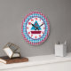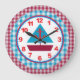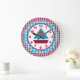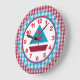 En snygg klocka som kan visas stolt i vilket rum som helst. Den yttre kanten av klockan görs i röd och blå gingham. Innersidan ansikte, med den röda och blå segelbåten, gränsas i rött och blått med blå minstermarkörer. Siffrorna är klara och djärva i ett samordnat rött.