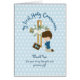 Personlig Boy's First Heliga Communion Tack. Ni-kortet med en söt blommigt kor, en ung pojke i sin första heliga kommunutrustning, kostym med en bibelbön med hans rosary pärlor. Det finns fält att lägga till en egen minnestext. Det här är ett vackert tackkort till gudföräldrar, mormor, Godmor eller Godfar, vänner, familj på din sons första Heliga. Kortet är tillgängligt med en rad karikatyrer som innehåller pojkar med olika färg- och hudtoner. Öppna fullt för att se alla.