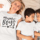 Är du en mor till en pojkars? Fira din pojkars status morsa med den här söta t-tröjan med ordspråket "morsa av pojkar" i svart, skrift med en bild av hjärta och pilar.