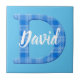Boys namn med brev D som första början. Blå plaid mönster-utskrift. Dekorativa keramiska plattor för pojkens rum. Text kan redigeras för att göra den här rutan unik.