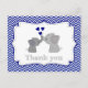 Tack för dina kort/anteckningar i POST-kortformat med en söt baby-elefant och mamma ge varandra, söta hjärtkyssar! Har NAVY BLUE #366-chevron-bakgrund och grått/grått-accenter. Alla teckningar/illustrationer/mönster/bilder är upphovsrättsliga och får INTE återges på något sätt. Endast personlig ANVÄNDA. Konstnärer behåller upphovsrätten. Alla höger reserverade. ©2000-Present MonkeyHutDesign/MonkeyHut
