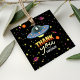 This Out of This World birthday Favor tag features a neon stars, planets, and a colorful UFO, with retro lettering for the words ‘thank you,’ and a matching pattern on the back. Personalize with your child’s name and age for a fun space themed kids birthday party favor. Perfect for a 6th, 7th, 8th or 9th birthday, alien party, outer space birthday, or retro galaxy celebration for boys or girls.