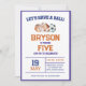 Låt oss ha en Boll! Fira i stil med det här anpassadet pojkarnas idrottsrelaterade födelsedagsinbjudan, med fet orange och marin färg. Perfekt för unga idrottare och sportfantaster, detta inbjudan är tonen för ett spännande party. Anpassa med ditt barns namn, ålder, datum och plats i party. Perfekt för fotboll, fotboll, basket och multiidrottsevenemang. Underbar för födelsedagsfester, gruppsammankomster eller sporttemat firande. Gör det minnesvärt med en design som barn kommer att göra kärlek!