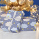 An Adorable Blue Striped Wrapping Paper Of Stars And Clouds For A Boys Baby Shower Gift