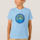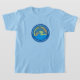 Cirkelformad logotyp på pulverblå skjorta. färg är anpassade. Se till att du väljer storlekare eller till och med överför till ett annat stil-kläder.