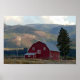 "Bozeman, Montana, Barn" av Catherine Sherman. Eftermiddagstid ljusar Absaroka-bergen bakom en röd lada nära Bozeman, Montana. Bortom bergen är Yellowstone nationalpark i Wyoming. Absarokas är en del av Rocky mountains.