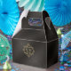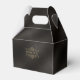 Fintvätt av filigree ramar, gräns och prydnadsföremål, texturerade i faux guld-folie, dekorerar biet i denna elegant bröllop-svit. Den här enkla men elegant-förmånslådan innehåller ett rullverk ram för att hålla initialer och bröllop på framsidan och tillvalet "Tack" på baksidan. Välj valfri bakgrund färg eller lämna det varma träkolet, texturerad effekt som vi har tillhandahållit. Lägg till initialer och bröllop med hjälp av den angivna mallen. Sök i ID871 om du vill se hela samlingen bröllop och andra färg-val för den här designen.