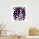 En levande, färglös design visar ett kvinnligt skelett som läser en bok samtidigt som man sänker en steamisk cocktail. Att omge henne är lila blommor och fjärilar, vilket ökar det livliga estetiet. Den djärva, färgstarka texten lyder: "Bra flickor läser dåligt bokar." Den här unika designen finns på en rad olika produkter.