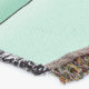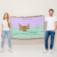 Orange tabby katt, som söker igenom filtar av mint färgad för att stirra på sin människa i hopp om att väcka dem i ljus och tidigt.