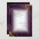 En vattenfärgsbakgrund i plommons nyans fylls av en abstrakt av bra guld linjer och glittrande ljuseffekter som skapar biet i denna vackra bröllop svit. Det "inbjudningskort" i bröllop som visas här har även text som inte är centrerad och en vacker övertoning ram som håller all text. Lägg enkelt till din egen information om namn, bröllop-datum och händelser med hjälp av den angivna mallen. Sök i ID867 om du vill se andra delara och färg-alternativ för den här uppsättningen.