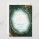 En vattenfärgsbakgrund i solnedgången av emerald grönt störs av en abstrakt av bra guld linjer och glittrande ljuseffekter som skapar biet i denna vackra bröllop svit. Den inbjudan till repetitionsmiddagen som visas här har också en vacker övertoning ram för att hålla all text. Lägg enkelt till din egen information om namn, bröllop-datum och händelser med hjälp av den angivna mallen. Sök i ID867 om du vill se andra delara och färg-alternativ för den här uppsättningen.