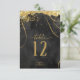 En vattenfärgsbakgrund i nyanser från kol-grått till svart fylls av en abstrakt av bra guld linjer och glittrande ljuseffekter som skapar biet i denna vackra bröllop svit. På det här bordsnumret i bröllop finns även kalligrafi för elegant och en mall som gör det enkelt att lägga till egna namn, bröllop-datum och bordsnummer. Sök i ID867 om du vill se andra delara och färg-alternativ för den här uppsättningen.