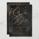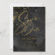En vattenfärgsbakgrund i nyanser från kol-grått till svart fylls av en abstrakt av bra guld linjer och glittrande ljuseffekter som skapar biet i denna vackra bröllop svit. Kortet "Spara datum" i bröllop som visas här har även låg, centrerad text och elegant. Lägg enkelt till ditt eget namn, bröllop-datum och din egen information med hjälp av den angivna mallen. Sök i ID867 om du vill se andra delara och färg-alternativ för den här uppsättningen.