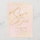 En vattenfärgsbakgrund i skuggorna av ro guld fylls av en abstrakt av bra guld linjer och glittrande belysningseffekter för att skapa biet för denna vackra bröllop svit. Kortet "Spara datum" i bröllop som visas här har även låg, centrerad text och elegant. Lägg enkelt till ditt eget namn, bröllop-datum och din egen information med hjälp av den angivna mallen. Sök i ID867 om du vill se andra delara och färg-alternativ för den här uppsättningen.