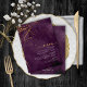En vattenfärgsbakgrund i plommons nyans fylls av en abstrakt av bra guld linjer och glittrande ljuseffekter som skapar biet i denna vackra bröllop svit. Kortet "Meny" i bröllop som visas här har även elegant-calligrafi och en oprecenserad layout för visuell dragningskraft. Lägg enkelt till egna val av initialer, bröllop-datum och menyer med hjälp av den angivna mallen. Sök i ID867 om du vill se andra delara och färg-alternativ för den här uppsättningen.