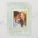 En vattenfärgsbakgrund i gröntens nyanser fylls av en abstrakt av bra guld linjer och glittrande belysningseffekter för att skapa biet i denna vackra bröllop svit. Det här "Tack"-kortet i bröllop har även kalligrafi för elegant och ram för övertoning för fotot. Lägg enkelt till ditt eget personliga tackmeddelande på baksidan med den angivna mallen. Sök i ID867 om du vill se andra delara och färg-alternativ för den här uppsättningen.