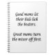 Rolig design på denna anteckningsbok som läser, i svarta bokstäver, "Bra mammor låter sina barn slicka omrörarna. Fantastiska mammor stänger av mixern först." Bra för ett skratt och de med en bra humor eller humor. Fantastisk present till alla barn. Roligt för tillbaka till skolan.
