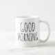 Ett vanligt bondhus inspirerade kaffe mugg med Bra Morgon i svartvitt.