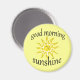 En bild av sol från artist/designer Charmaine Paulson med texten "bra morgon sunshine" på en magnet.