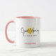 En förtjusande Bra God morgon Sunshine-kaffe mugg eller choklad mjölk mugg för barnen! Anpassa tvåtonsfärgen färg! Mugg visas här i vitt med ett rosa handtag. Bra Morgons solskyddsskript är svart över ett enkelt, skuggigt, gult sol. Sätt er egen särprägel på den!