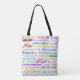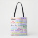 Det här trendiget och upplyftningen till väskan innehåller frasen "Bra Morgon" på många-språk, som ordnats i en snyggt och konstnärlig layout. Perfekt för att bära med sig vardagsbehov med en positiv vib!