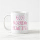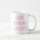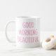 bra morgon vacker mugg är ett sött mugg för alla som inte är en morgonmänniska eller bara behöver lite tyst tid. Det har en rosa avslappnad och ord "bra morgon vacker" skriven för den du kärlek.