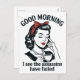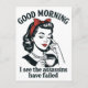Mörk humor möter retro charm med detta femtiofemte morgoncitat: "Bra morgon, jag ser att mördarna har misslyckats." Perfekt för kaffe älskare och alla som har sarkastisk start på dagen.