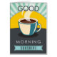 En grafisk design med ett gulligt kaffecitationstecken.