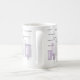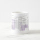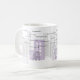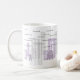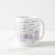 En stilfull mugg med "bra morgon" i åtskilliga språk och purpurfärgad cityscape. Varje formulerar följs av ett språk kodifierar.