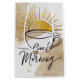 Bra morgon, den här designen har ett vackert gyllene sol och solstrålning med en kopp av kaffe och text som säger "Bra God morgon".