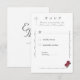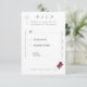 Utformningen har det traditionella formatet för ett bröllop-svarskort. Rubriken visas i ett elegant Nuptial-teckensnitt, medan brödtexten ramas in med silver som gräns. Den traditionella symbolen kor och ringar visas i det nedre lämnat hörnet, medan bilden av delikat ro glappar upp högerna grund. Vänd visningar initialerna för brud och groom länkat i ett elegant Nuptial-teckensnitt. Mycket elegant. Designad för samordning med den Bra Ro katolska Bröllop Suite.