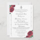 Utformningen av ett silver kor och ringar i centrum visar att Kristus är i centrum av den folkliga unionen mellan män och kvinnor. Bilden av bra ro visas överst till lämnad och i högerna grund. En elegant, silver, blomstrar i ram för att få det traditionella formatet för en katolsk bröllopsinbjudan. Namn av brud och groom visas i ett elegant-teckensnitt. Texten och gräns finns i silver färg. Finns även med teckensnitt för burgundy-ro och gräns. Designad för samordning med den Bra Ro katolska Bröllop Suite.