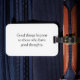 Var som helst med bagagetaggen "Bra Sak händer de som har Bra tankar". Designad för resenärer som sätter värde på inspiration och sinnesstämning är denna märkre både praktisk och upplyftande. Varaktig, lätt att fästa och fånga öga hjälper det dig att snabbt upptäcka ditt bagage samtidigt som du sprider ett optimistiskt budskap på varje resa. Perfekt för dig själv eller som en tänkbar gåva till vänner och familj som kärlek ska resa avsiktligt.