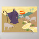 Illustration av den bra herde som vårdar sin flock vid en dalström. Bild finns tillgänglig på olika presenter och produkter. Jag är bra herde. Den bra herdehinnan fastställer sitt liv för fåren - John 10:11