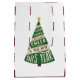 Den här roliga helgdag-presentsäcken har en handskriven illustration av ett Julgran som säger "bra tidningar och hjort och till helvetet med det här året" på framsidan och baksidan. På säckens sidor finns en samordnande sida i rand mönster.