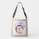 Kvinnors korsningspåse har en färgstark cirkulär symbol för humanism med "handskrivet" teckensnitt