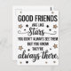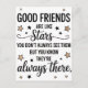 Fira den varaktiga vänskapsbanden med denna vackra citatdesign. Med det varmhjärtade budskapet "BRA VÄNNER är som stjärnor du ser dem inte alltid MEN DU VET ATT DE ALLTID FINS DÄR" är denna design kompletterad med charmiga stjärnillustrationer. Perfekt för att uttrycka uppskattning för dina vänner, är denna mångsidiga design idealisk för tryck, kort, presenter eller heminredningsartiklar. Dela denna sentimentala påminnelse med dina närmaste vänner eller lägg till en stänk av värme i ditt eget utrymme. Det är ett underbart sätt att hedra de speciella kopplingar som lyser starkt, även när de är långt borta.