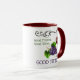 Fira din vänskap med denna roliga kaffekopp. Den har ett glas vin och druvor, med text som lyder "Bra vänner Bra vin BRA TIDER!" Denna design finns på fram- och baksidan av muggen.