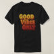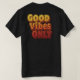 Ta med dig positiviteten vart du än går med den här snyggten "Good Vibes Only"-typografi T-shirt. Designat med djärvt återinspirerat brev i färg i värmegradient är denna garanti perfekt för att sprida lycka och lyfta upp energi. Perfekt för avslappnad bära, presenting, eller någon som kärlek trendig ger motivation. Bära det med tillförsikt och de bra viberna!