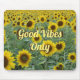 Ljust fält av solrosor med retro text "för bra Vibes endast"