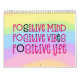 Bra visar en kalender med ett positivt uppgraderingsmeddelande för varje månad på året i typografi med stor funky. Färgadens fram- och baksida har en vibrerande baksida av regnbåge med shock rosa med ett svart tryck och inre bakgrunder av shock rosa med vit typografi med shock rosa och svarta högdagrar. Du kan ändra färgen för bakgrunden till shock rosa om du vill det via alternativet Klicka för att anpassa ytterligare.