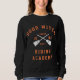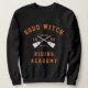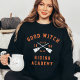 Visa lite skolanda här Halloween! Cute Halloween-designen för häxor i träningsfunktionerna "Bra Witch Riding Academy, 1692, Salem, Mass." i orangens kollegiala bokstäver, med två korsade broomstick-illustrationer.