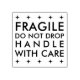 Anpassningsbar gummi frimärke med "bräcklig, droppe inte, hantera med försiktighet" i klassisk sans serif-typografi med stjärna gräns. Finns i flera storlekar, med ytterligare dynor från bläck i många färg.